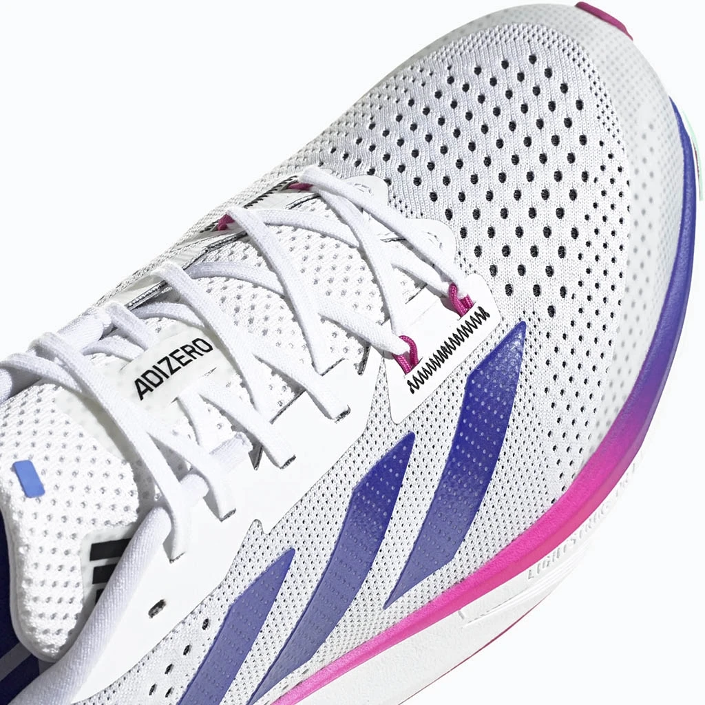 La chaussure Adizero SL pèse environ 190 grammes, ce qui la rend très légère et idéale pour les coureurs qui recherchent une chaussure de course performante et rapide. Elle est également dotée d’un système de laçage traditionnel et d’un contrefort de talon pour un ajustement personnalisé et un soutien supplémentaire.