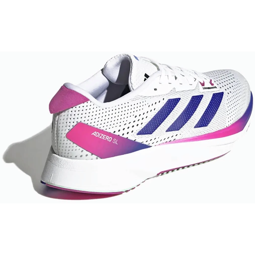 La tige de la chaussure Adizero SL est fabriquée à partir d’une maille respirante qui permet à l’air de circuler à travers la chaussure, ce qui aide à garder les pieds frais et confortables tout au long de la course. La maille est également légère et flexible, ce qui assure un ajustement confortable et une liberté de mouvement.