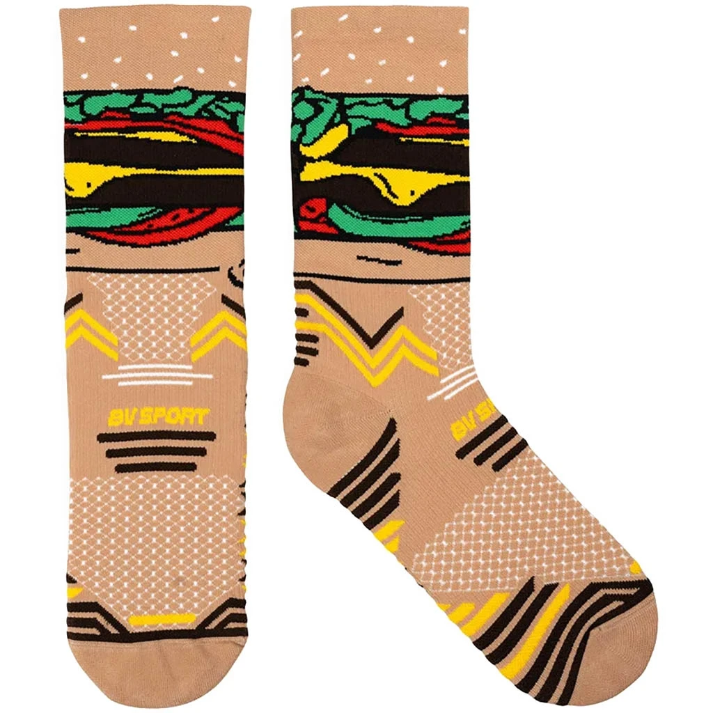 La chaussette de trail Nutrisocks Burger – Collector de BV SPORT issu de la première collection collector Nutrisocks vous emmène au Fast Food pour une expérience gourmande et technique pendant vos trails !