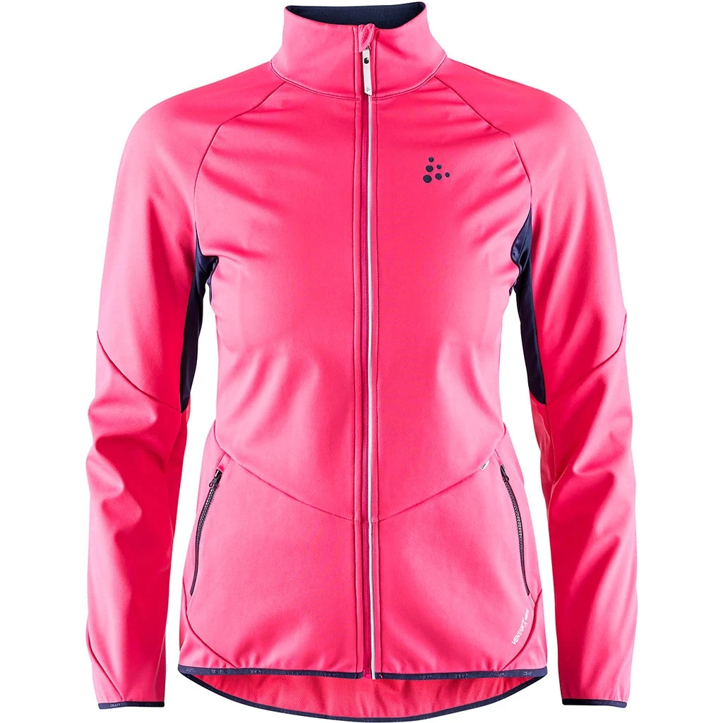 La veste de running pour femme CRAFT Glide Veste, ici déclinée en coloris rose et noir, est idéale pour vos séances hivernales de running grâce à sa propriété coupe-vent.