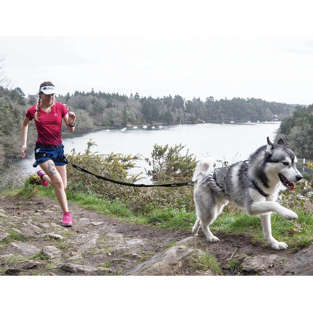 La longe de traction Raidlight est équipée de deux mousquetons, un à chaque extrémité, qui permettent de l’attacher au harnais ainsi qu’au baudrier. Son mousqueton rotatif permet également une utilisation en laisse traditionnelle.