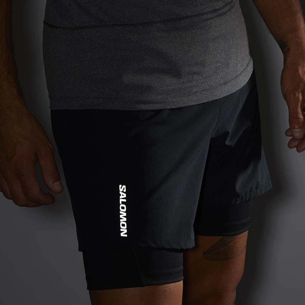 Le short pour homme Salomon Cross Twinskin est un modèle technique et particulièrement confortable, conçu pour les sorties en trail/running.