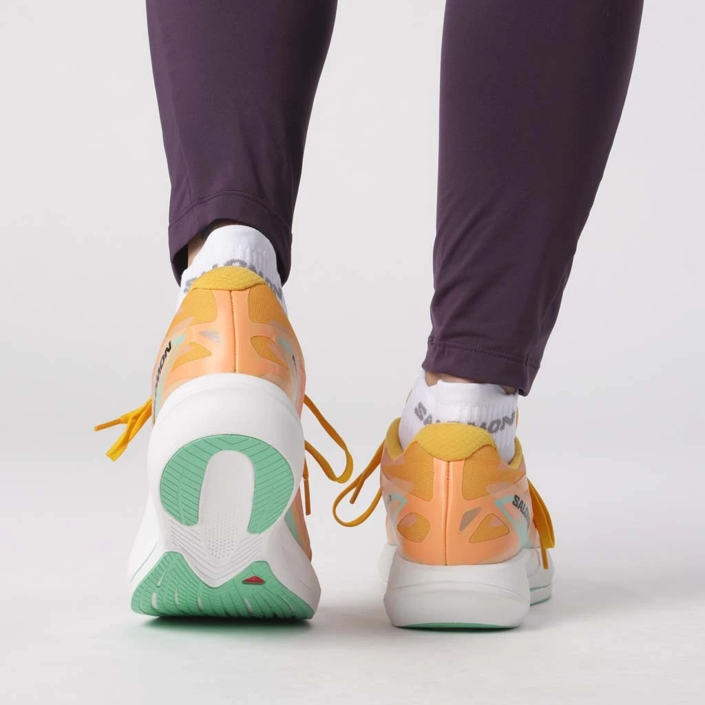 La mousse Energy Foam, mise au point par Salomon, combine de manière réactive de l’EVA et de l’Olefin (OBC), offrant un retour d’énergie considérable tout en restant légère. Cette combinaison procure ainsi la sensation d’une propulsion à chaque foulée. De plus, la chaussure intègre la technologie Energy Blade : une plaque légère en TPU insérée dans la semelle intermédiaire. Cette innovation engendre une impulsion arrière pendant la marche, ce qui se traduit par une vitesse additionnelle, un décollage en douceur et une transition équilibrée du talon à l’avant-pied. Parmi les technologies présentes dans de nombreuses chaussures de course Salomon, il y a aussi la Reverse Camber, une « semelle basculante » arrondie qui garantit une transition fluide du talon à l’avant-pied.